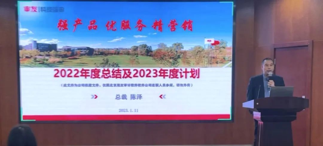 新的一年,新的征程,新的期待。用友審計于1月11日召開了“強產品 優服務 精營銷”為主題的年度會議。會議采取線上線下相結合的形式,共計200余人參會。